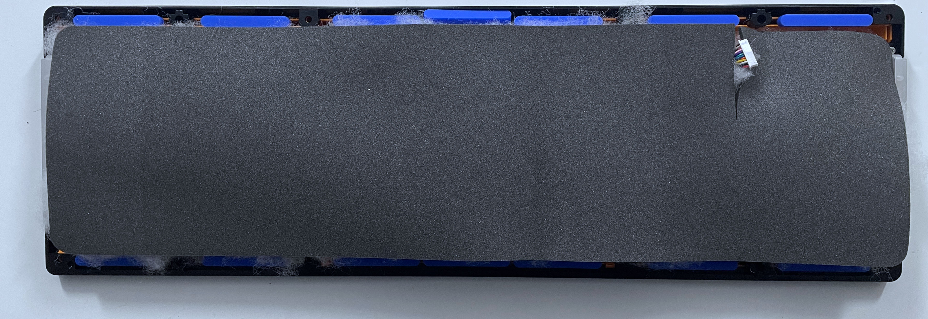 The amount of Fibre Fill is really small, as we had to fit-test this multiple times. But once we get most of it tucked into the cavity of the keyboard, we can move on to the next step, which is the foam sheets. Just as a note, we're not taping or gluing any of this down! We let it float inside because, as we assemble the keyboard, we can take a screwdriver and push the foam along the sides as we close it all up.