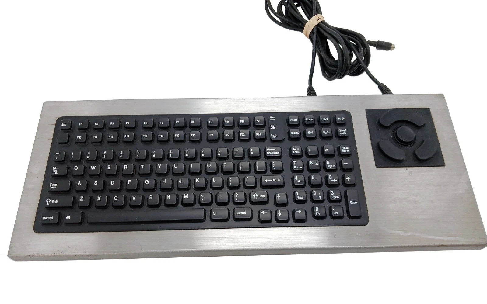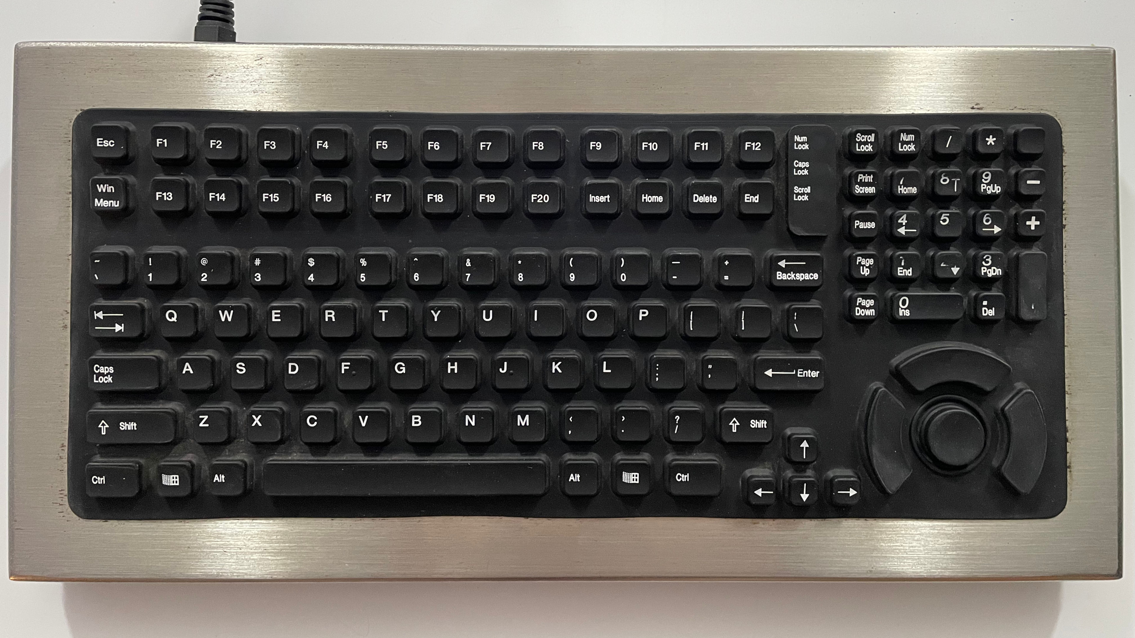 Coming in at just over 6lbs or 0.45kg. This keyboard is a fucking majestic beast! The kind of keyboard that, if you whip it across the room, drywall and wooden doors will be destroyed before anything happens to the keyboard itself! We would say the only thing that's missing from modern industrial design is a quick disconnect for the cable, because in general, you don't want to really touch a wiring harness on a PLC or a CNC machine unless you absolutely have to. Finally, they did a great job with the cabling on this as well. 30+ years and it's still reasonably flexible. Also, we think we've seen these keyboards appear in various science fiction movies as background props just because of how industrial they look. Coming from the era where IT was rewarded for providing solutions instead of generating tickets, spending $600 for a harsh environment like a foundry is more than justified.