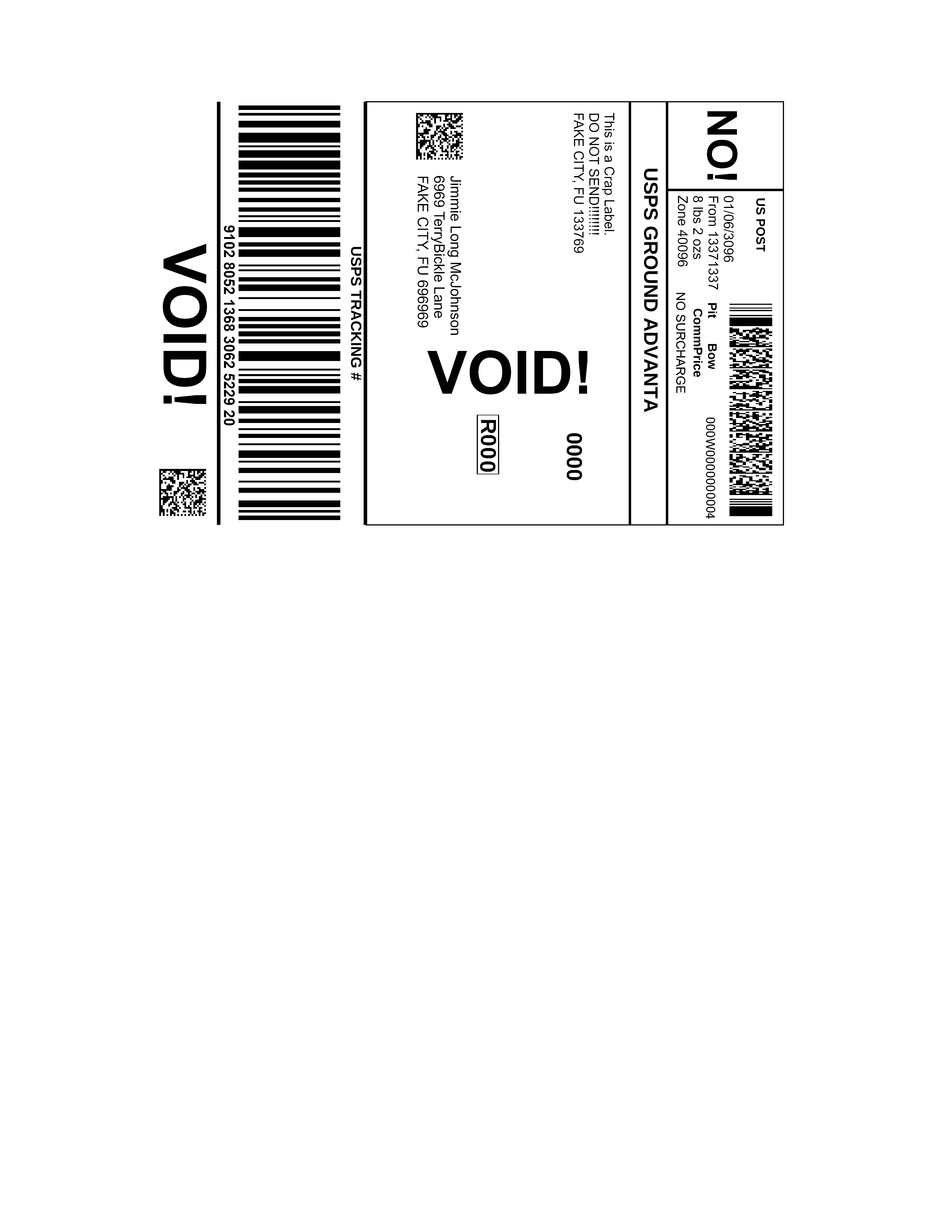 Here's the label we usually get from eBay.. Well! Not precisely the label. As you can clearly see, we edited it a LOT to ensure it's not a real label but close enough, as eBay likes using datamatrix codes in the footer and address portion of the label, which effectively says the same thing as the code 39. Even though all of the labels are changed out, we made sure the matrices on each of the labels were equally complex.